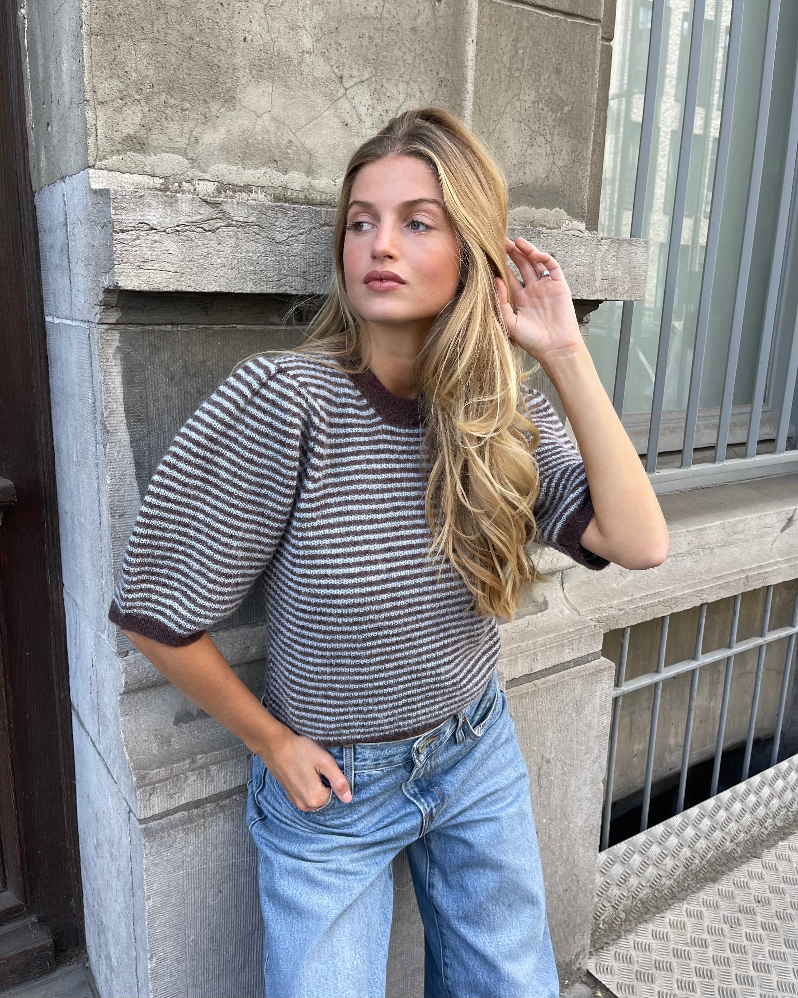 Frederica Pullover Puff Sleeves Brown / Light Blue