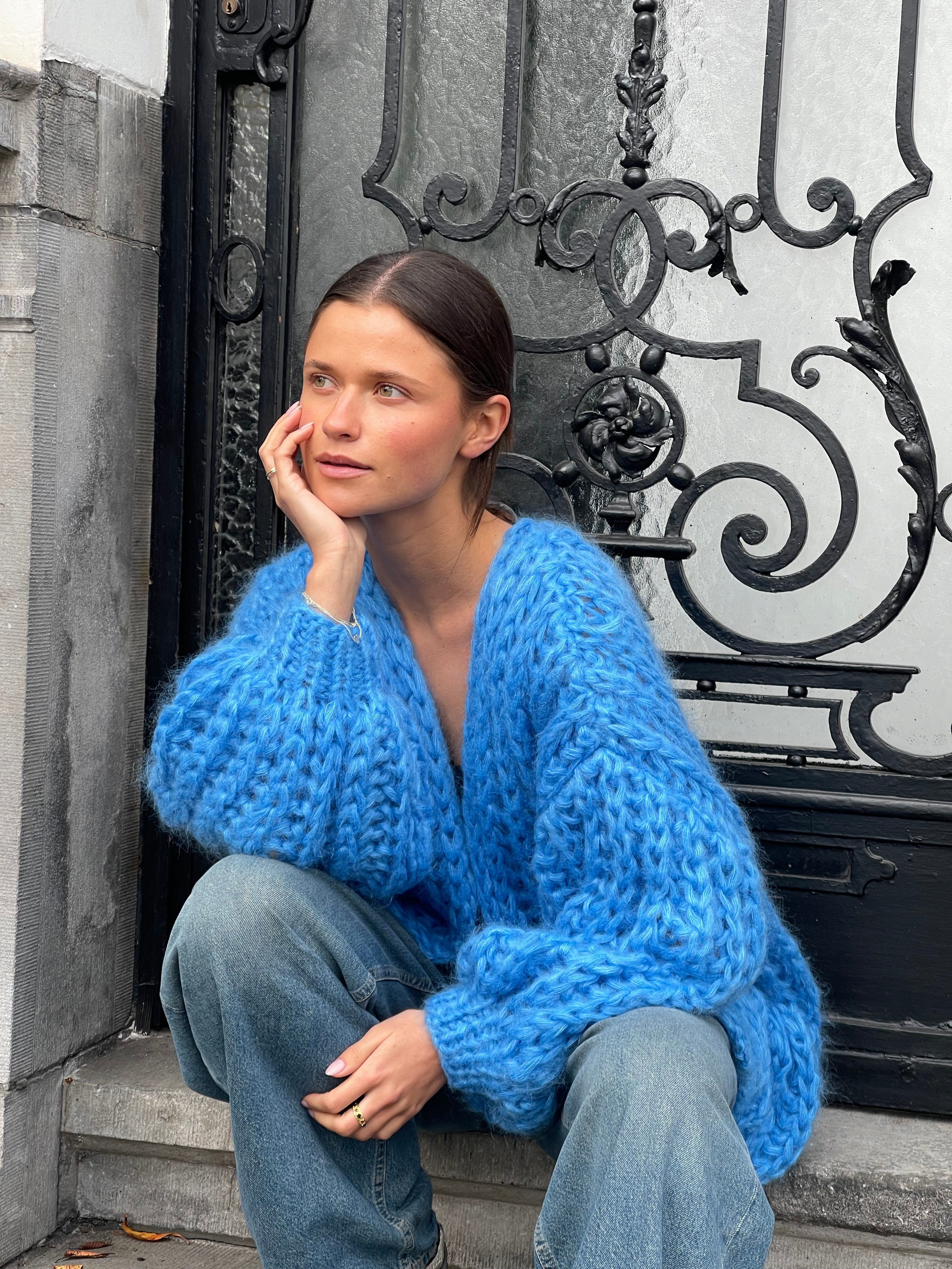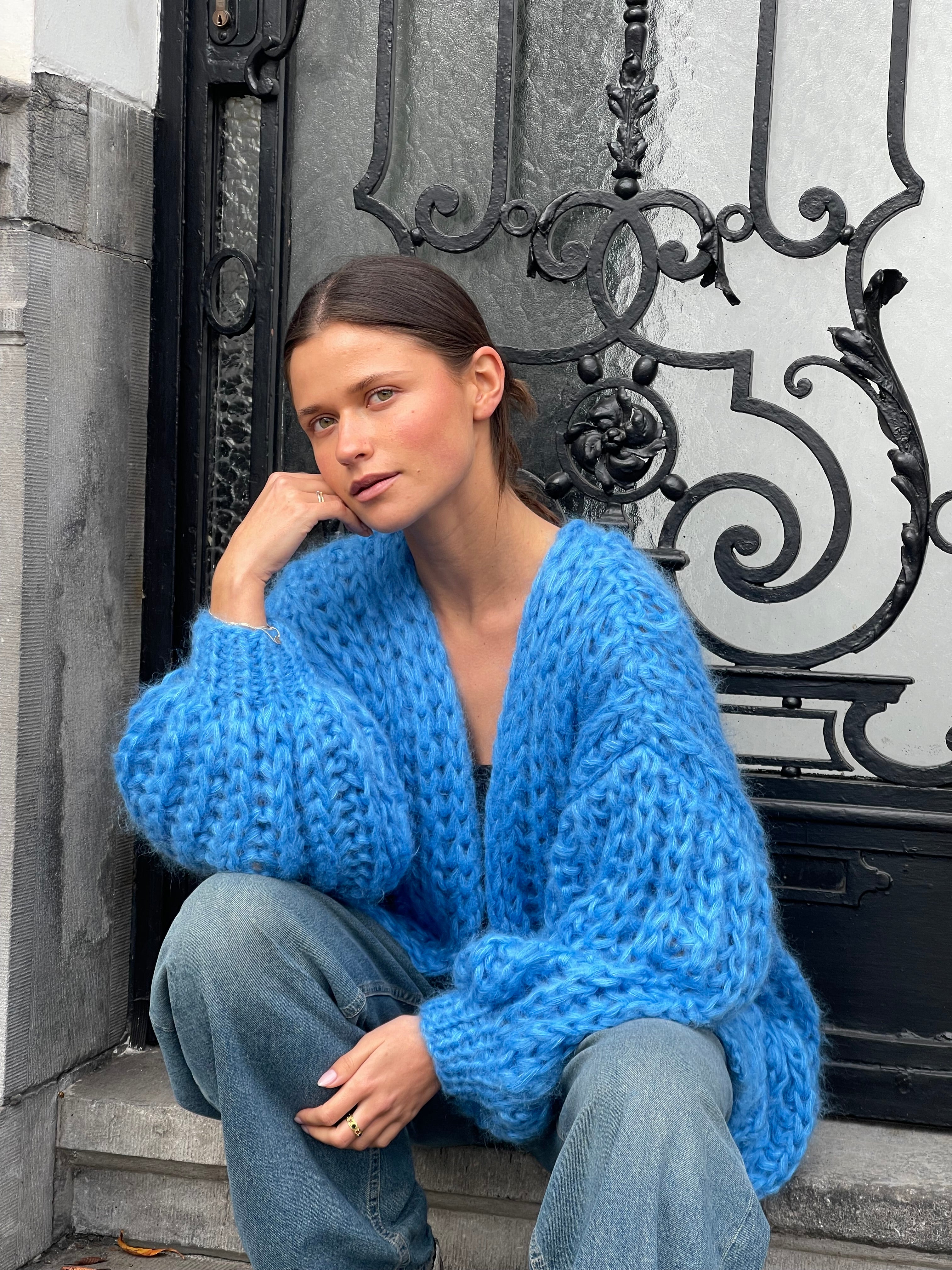 Audrey Cardigan Rib Jeans Blue