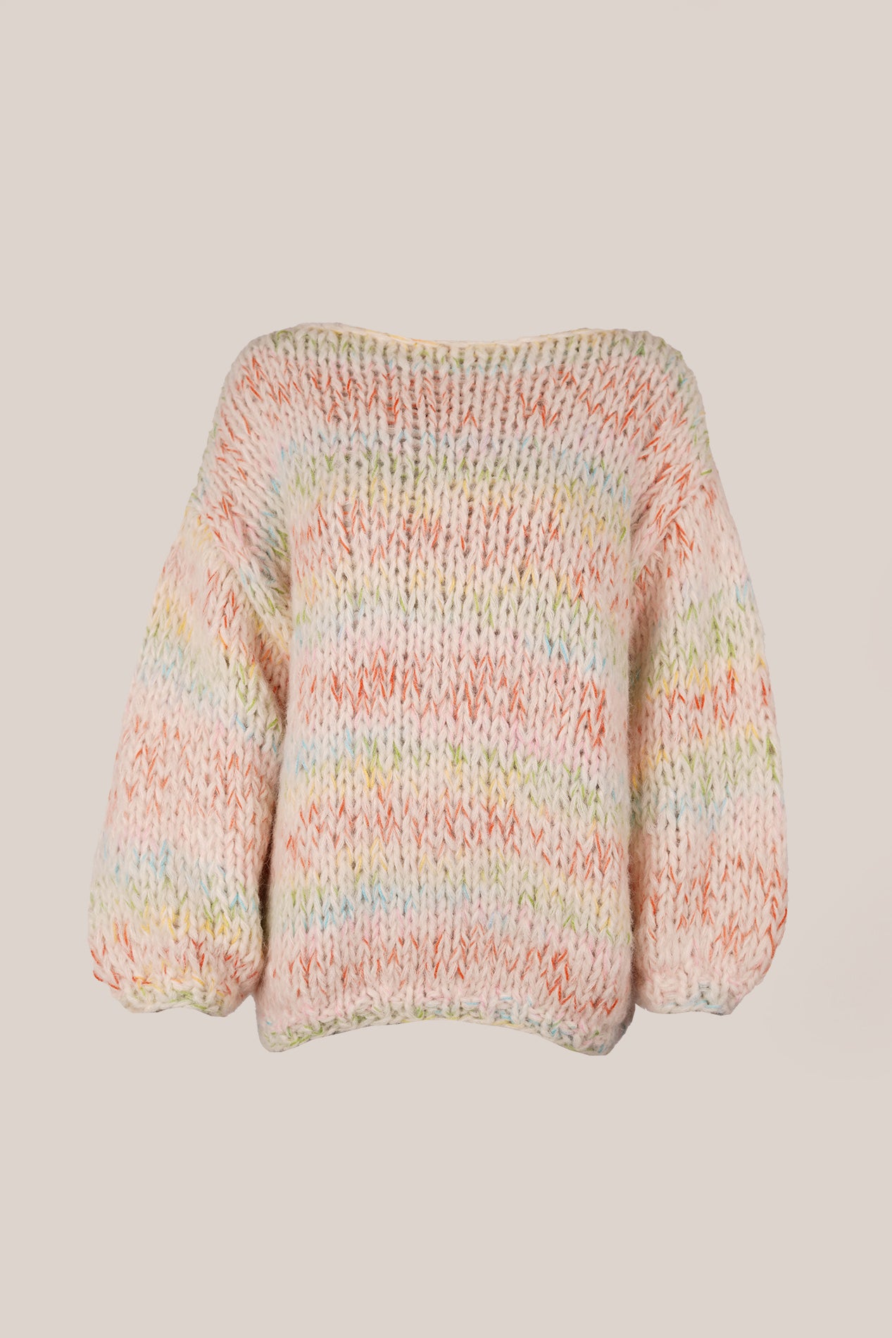 A multicolor round-neck pullover, blended with soft alpaca. Warm, lightweight, and available in a variety of colors.