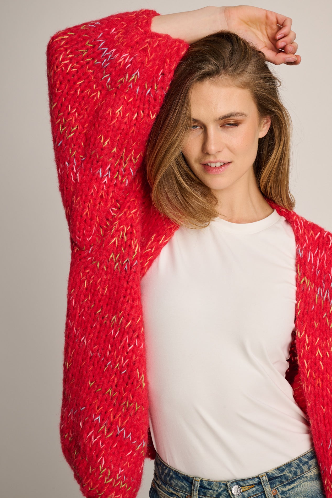 Isa Cardigan Short Red Multi