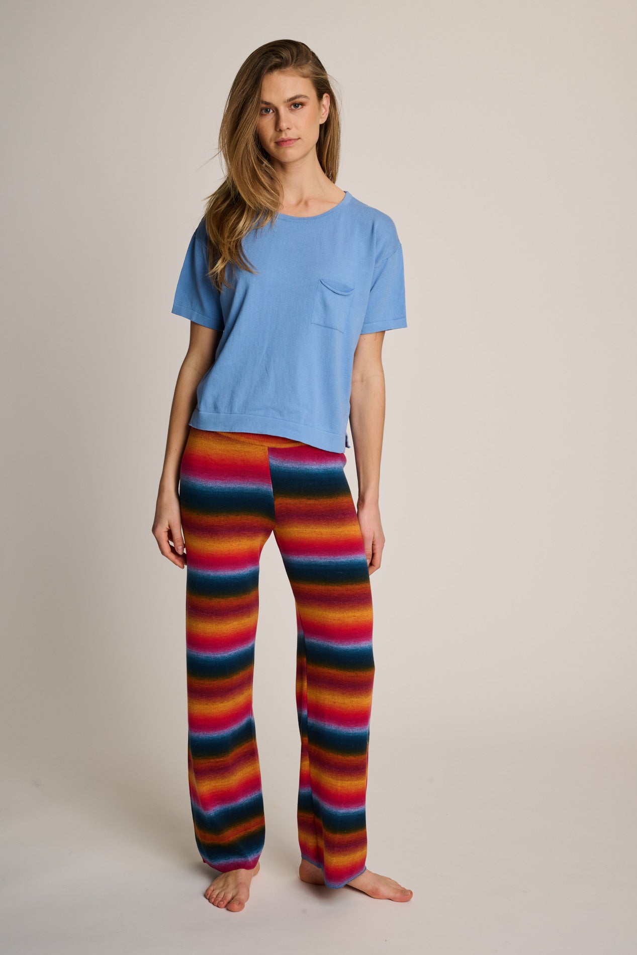 Soft and comfortable knitted pants, made from 100% cotton. Lightweight, breathable, and available in different colors.