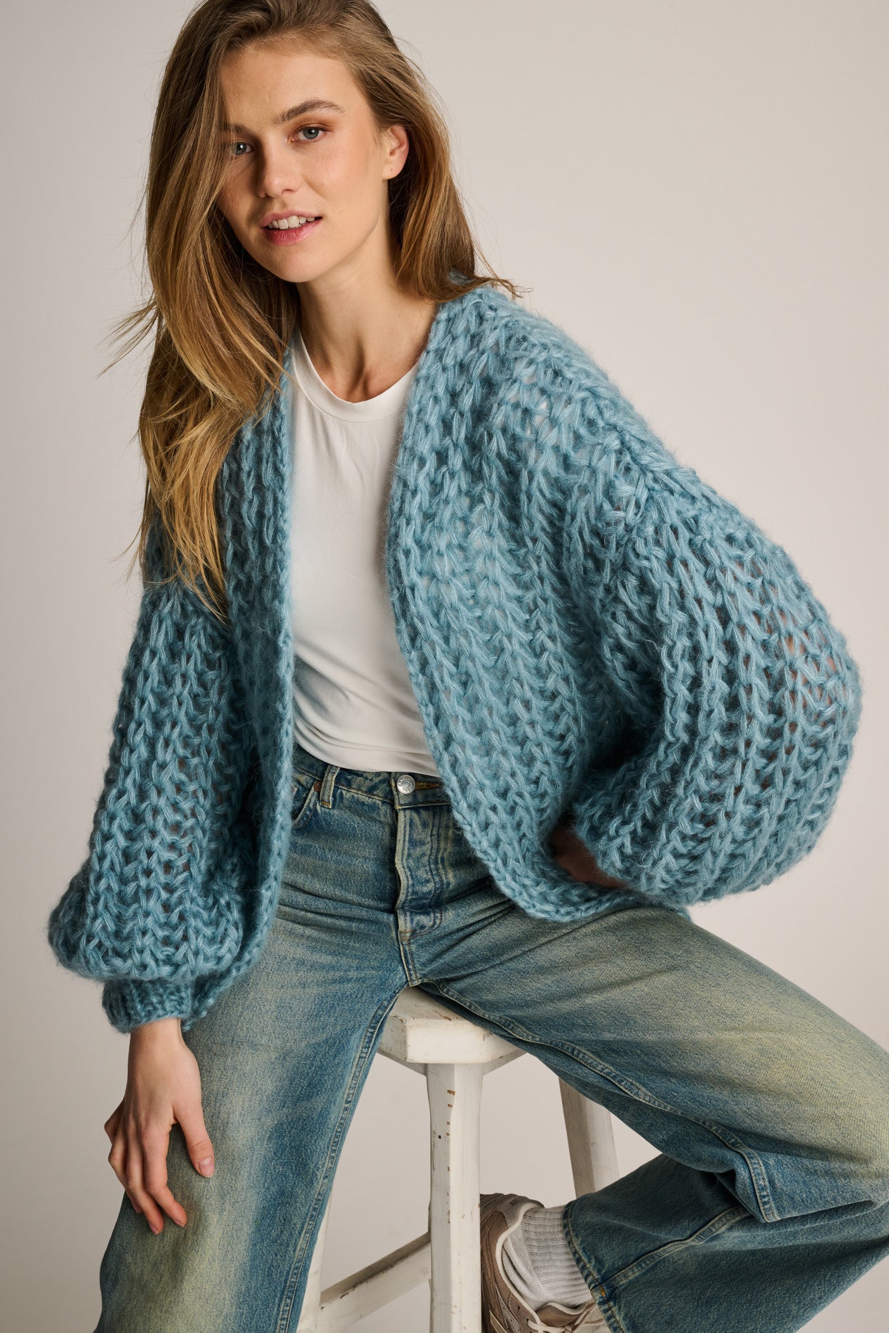 A short ribbed cardigan, blended with soft mohair and silk. Luxurious, lightweight, and available in five beautiful colors.