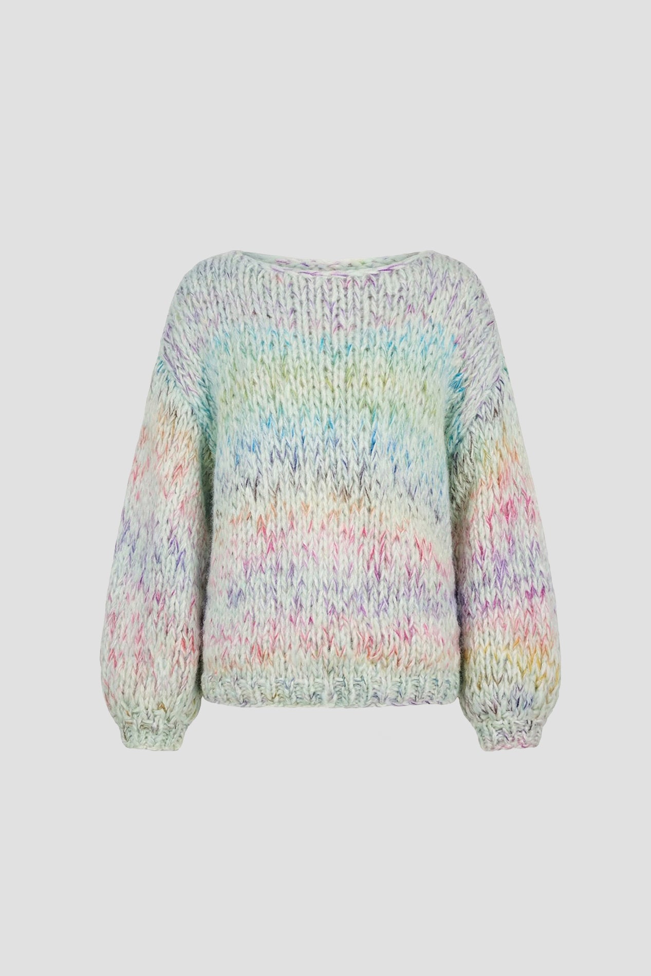 A multicolor round-neck pullover, blended with soft alpaca. Warm, lightweight, and available in a variety of colors.