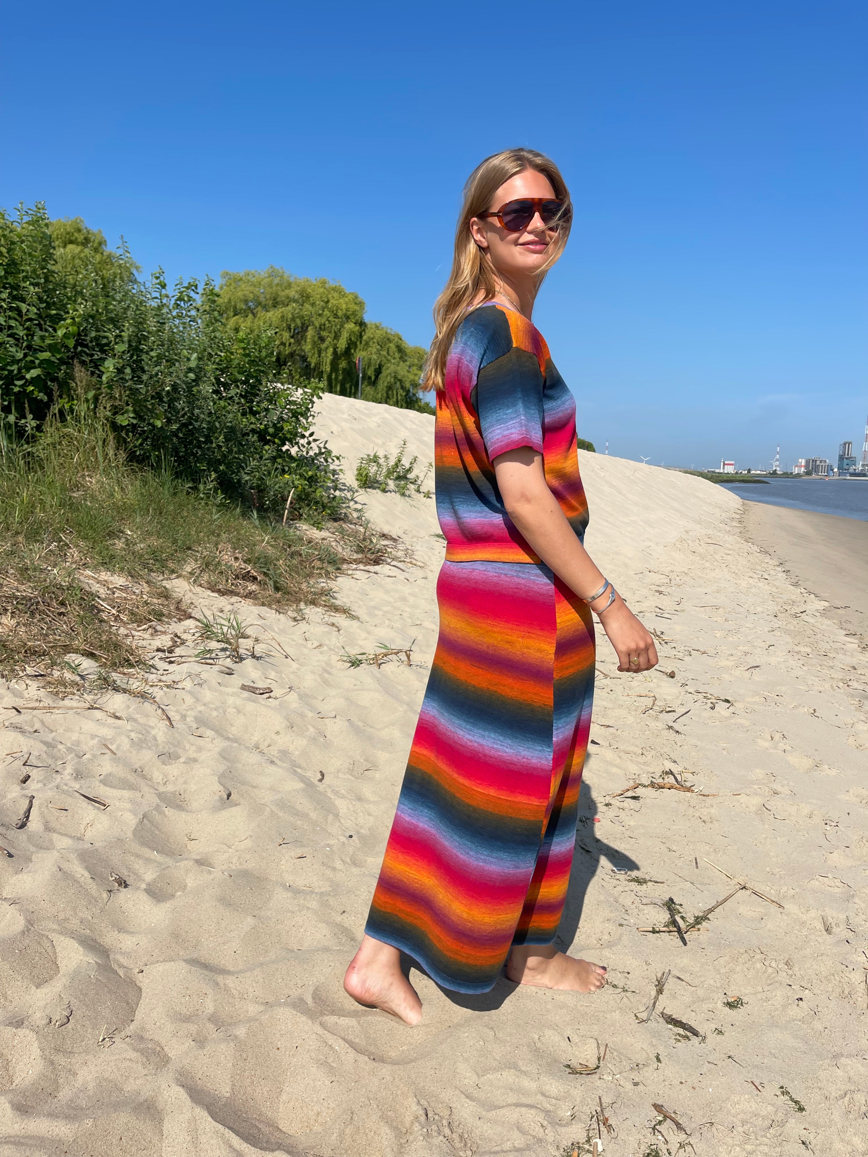 A knitted skirt, made from soft cotton. Comfortable, breathable and perfect for colorful everyday styling.